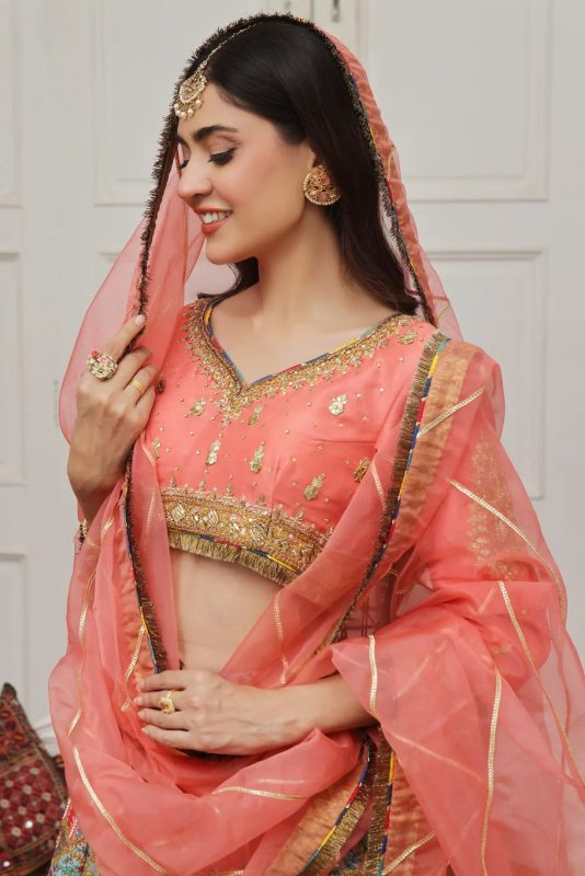 Ivory Raw Silk Choli & Gota Lehenga Set