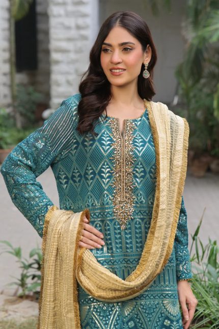 Blue & Black Front Open Shirt with Crushed Silk Lehenga